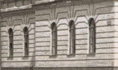 Кладка арки, либо вокруг окна второго этажа (характерно именно для каменных сооружений)