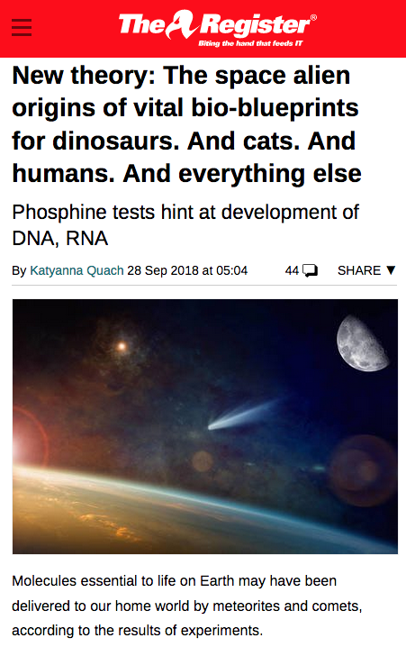 And here we have a new variant of Panspermia (devilishly clever linguistic wordplay: "Pan's Sperm"). But take note of the hook here; "phosphates." So perilously close to "glyphosphates," don't you think?